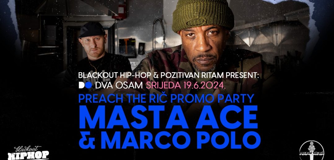 Legendarni Brooklyn MC Masta Ace vraća se u Zagreb nakon dugo vremena, i sa sobom dovodi sjajnog kanadskog producenta Marca Pola. Datum ove priredbe je srijeda, 19. lipnja, lokacija klub DVA OSAM, a povod warm-up party za hip-hop festival Preach the Rič.