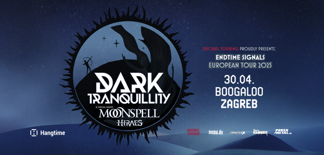 Ljubimci zagrebačke publike Dark Tranquillity vraćaju se u Boogaloou nakon sedam godina u sklopu europske turneje „Endtime Signals“ i to u srijedu, 30. travnja 2025. godine, uz portugalske gotičare Moonspell i njemačke melodic death metalce Hiraes.