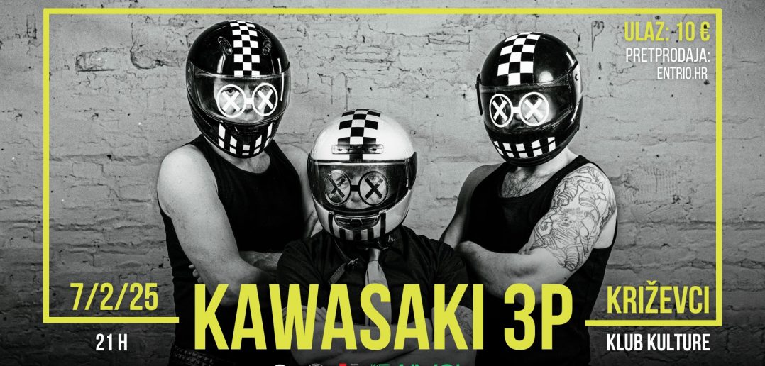 Kawasaki 3P nije nestao. Samo se odmarao i u miru podesio mašinu da bude još moćnija i glasnija! Njihovi koncerti nisu za one sa slabim zdravstvenim stanjem. Spremite se za brutalan udarac K3P zvuka jer nabrijana ekipa iz benda vraća se još jača no prije. Ska punk rock miljenici hrvatske publike napokon će ponovno zasvirati uživo.