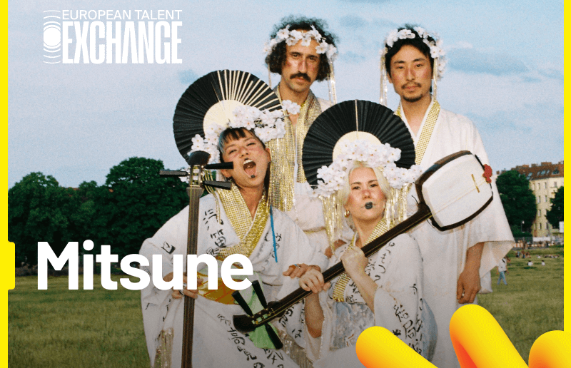 Mitsune je japanski peteročlani sastav sa sjedištem u Berlinu, kojeg čine glazbenici iz Japana, Njemačke, Australije i Grčke. Bend predvode dvije sviračice Tsugaru shamisena – četiri stoljeća starog trožičanog instrumenta koji je nekoć bio omiljen među slijepim sviračima i lutajućim glazbenicima starog Japana. Uz pratnju perkusija i kontrabasa, Mitsune je glazbeno-vizualna senzacija neviđene energije koja spaja japanske narodne pjesme, psihodeliju, jazz, dekadentne kostime i evocirajuće pripovijedanje. Od svog osnutka 2018. godine, Mitsune su nastupali diljem Europe, dijeleći pozornicu s izvođačima poput Hiatus Kaiyote, iznenađujući publiku na festivalima svih žanrova, od techna do folka. Njihov drugi album, ‘Hazama’ (2022.), predstavljen je i pohvaljen u časopisima Rolling Stone i Songlines, te je ušao u Top 10 Transglobal World Music Charta.
