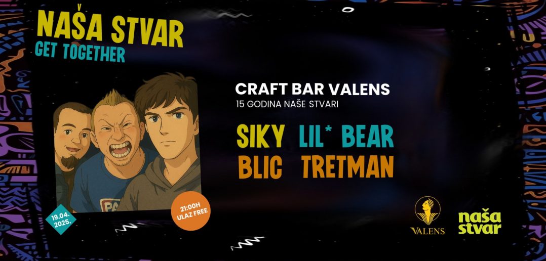 Naš tim – Blic Tretman (Filip Meštrović), Lil Bear (Mislav Medić) i Siky (Josip Džijan) – bio je sinonim za dobru vibru, vrhunske glazbene poslastice i zajedništvo. Sad, nakon što skoro cijelo desetljeće nismo svirali zajedno u početnom sastavu, vraćamo se u istom kako bismo proslavili 15 godina Naše Stvari, a lokacija je Valens, 19. travnja.